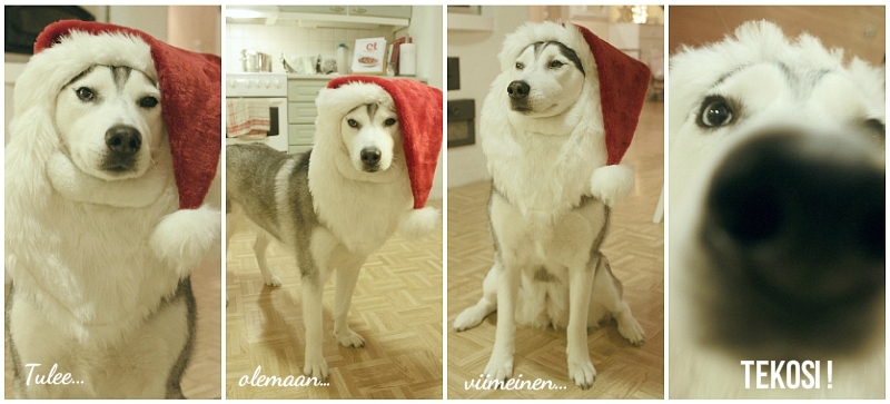 Jos sattuu omistamaan valjakollisen koiria on jouluna ehdottomasti käytävä reellä ajamassa. Yleensä olemme tehneet perinteisen jouluajelun yöllä ja viime vuonna ei päästy reellä ollenkaan liikkeelle lumen puutteen takia. Vegan takia emme voi ajaa yli 10 km reittejä vielä, mutta onneksi alle kympillä pääsee omasta pihasta kivalle lähilaavulle. Siellä nuotion loimussa kelpasi juoda kaakaota ja kuunnella korpin raakkuvan jossain lähellä. Ai niin ja kuunnella makkaraa kerjäävien koirien huutoa. Pakkastakin taisi olla ihan mukavasti, koska kermavaahtopurkki poksahti käsiin ja kamerakin jäätyi niin, että näytöllä oli kuurankukkia. Sero katkaisi kannuskyntensä kauppareissulla, mutta jäi tyytyväisenä kotiin jalka paketissa. Seron 14. joulu ja hän kyllä tietää, että se tarkoittaa joululautasta ja lahjoja! Tässä meidän valjakon jouluterveiset.
